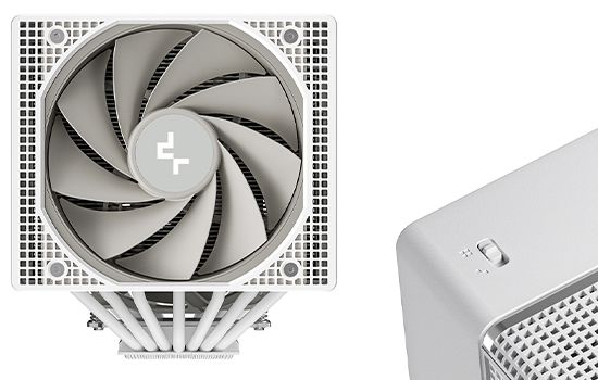 Com um simples toque de um botão, o ASSASSIN VC ELITE WH pode se transformar de um refrigerador silencioso quando o baixo ruído é de extrema importância para a eficiente força de resfriamento pela qual os refrigeradores de ar DeepCool são conhecidos.