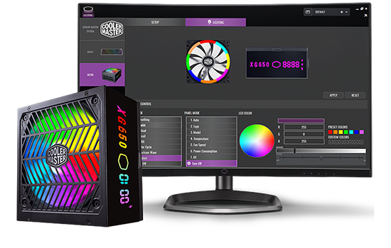 O XG Plus Platinum é a primeira plataforma projetada internamente pela Cooler Master, criada para fornecer eficiência nominal e desempenho de ponta. Oferece cabeamento modular completo com capacitores em linha, ventoinha silenciosa ARGB de 135 mm e garantia de 10 anos. O painel de exibição de informações integrado compatível com o software MasterPlus + pode monitorar o desempenho em tempo real e gerenciar os efeitos ARGB sem problemas.