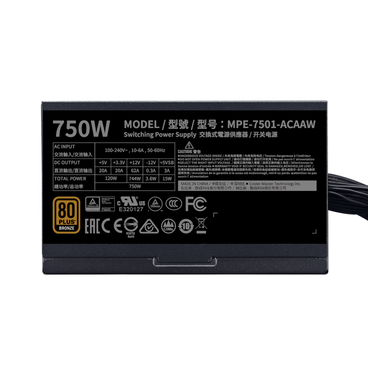 FONTE COOLER MASTER MWE 750 BRONZE – V2, 750W, 80 PLUS BRONZE, PFC ATIVO