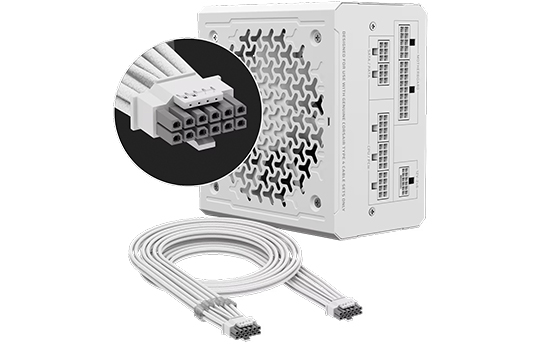 Reduza o emaranhado de cabos conectando apenas os cabos necessários para o seu sistema. Um conector de GPU 12V-2×6 nativo de 600W e vários conectores PCIe de 8 pinos resultam em fontes de alimentação RMe que vão além das necessidades de GPUs e CPUs modernas e futuras.