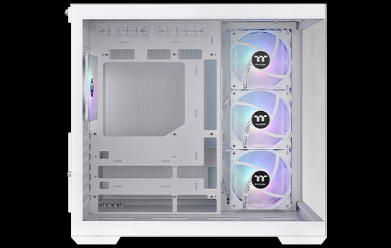 O View 380 TG ARGB Snow Mid Tower Chassis vem com quatro ventoinhas Hydraulic Bearing 120mm ARGB Lite na parte traseira e na lateral da placa-mãe. Seus fascinantes efeitos de iluminação podem ser controlados pelo software da placa-mãe da ASUS, GIGABYTE, MSI e ASRock.