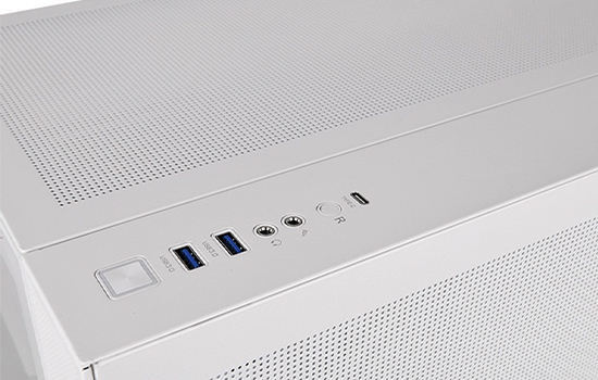 Duas portas USB 3.0, uma USB 3.2 Gen 2 Tipo C e portas de áudio HD são colocadas no painel superior para conceder acesso direto quando necessário.