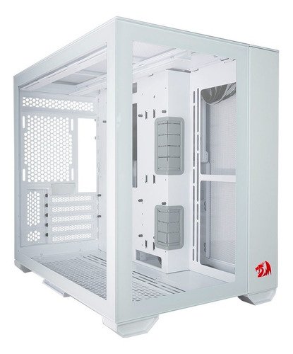 Gabinete Gamer Lian Li O11 Dynamic Mini Redragon Edition, Mid Tower, Vidro Temp, Suporte ATX, Branco – O11DMINI-RD-W