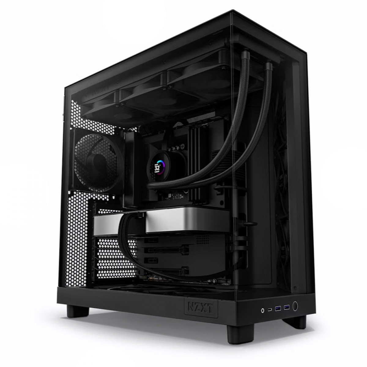 Experimente o desempenho máximo em uma câmera dupla compacta e inovadora. Priorizando o resfriamento da GPU, o vidro panorâmico do H6 Flow mostra o interior enquanto libera espaço para melhorar o fluxo de ar.