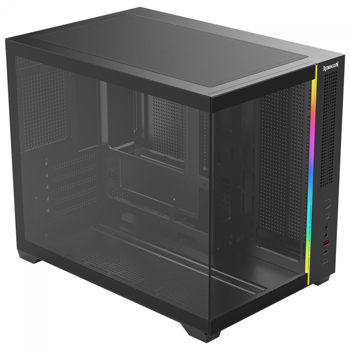 GABINETE GAMER REDRAGON WIDELOAD MINI LITE, RGB, MID TOWER, VIDRO TEMPERADO, MATX, SEM FAN, PRETO