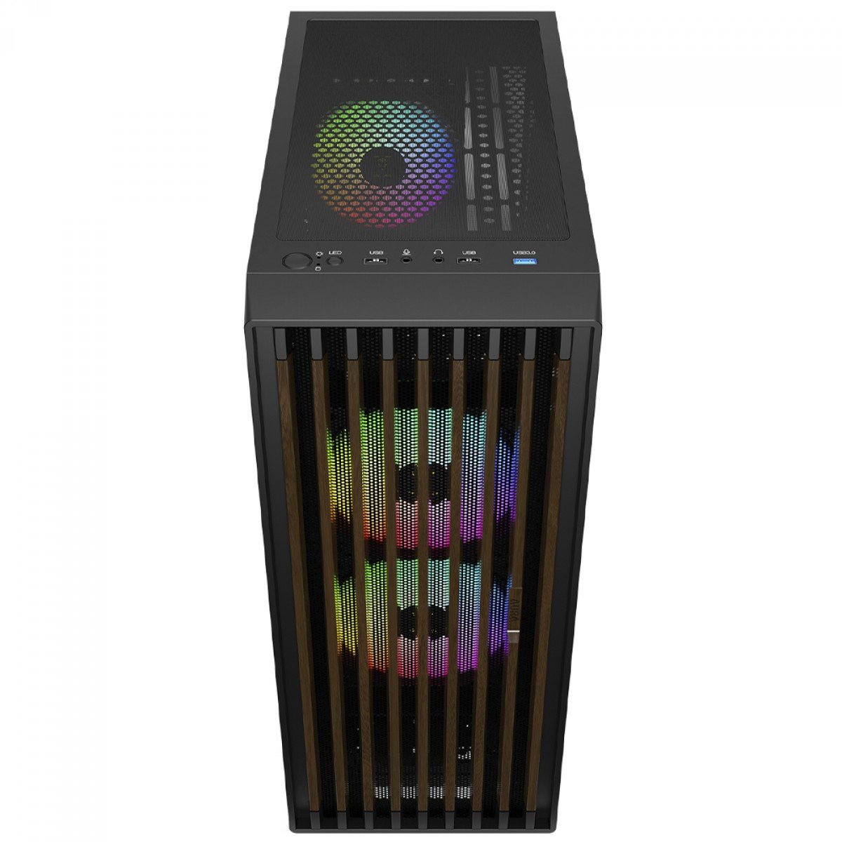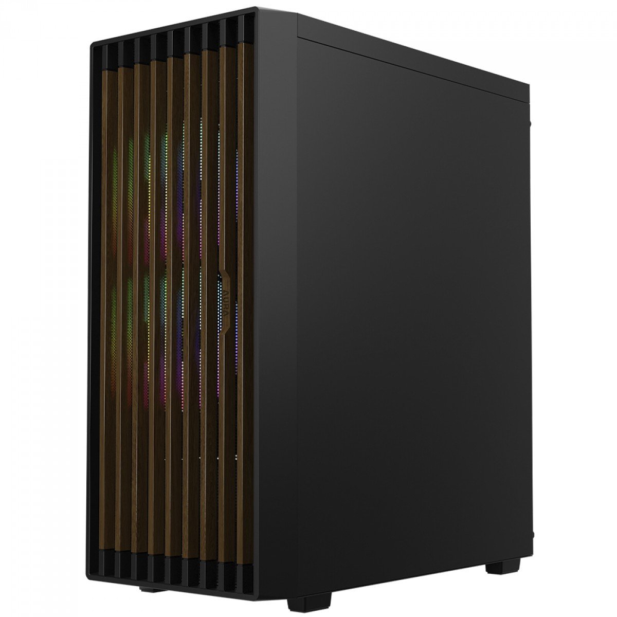 Gabinete Moderno Frente Madeira Gamdias Aura GC4 Elite, Mid Tower, Vidro Temperado, ATX, Com 3 Fans ARGB