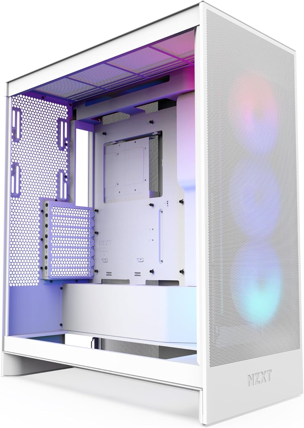 Gabinete NZXT H7 Flow RGB Branco, Mid Tower, Vidro Temperado, E-ATX, Com 3 Fans, CM-H72FW-R1