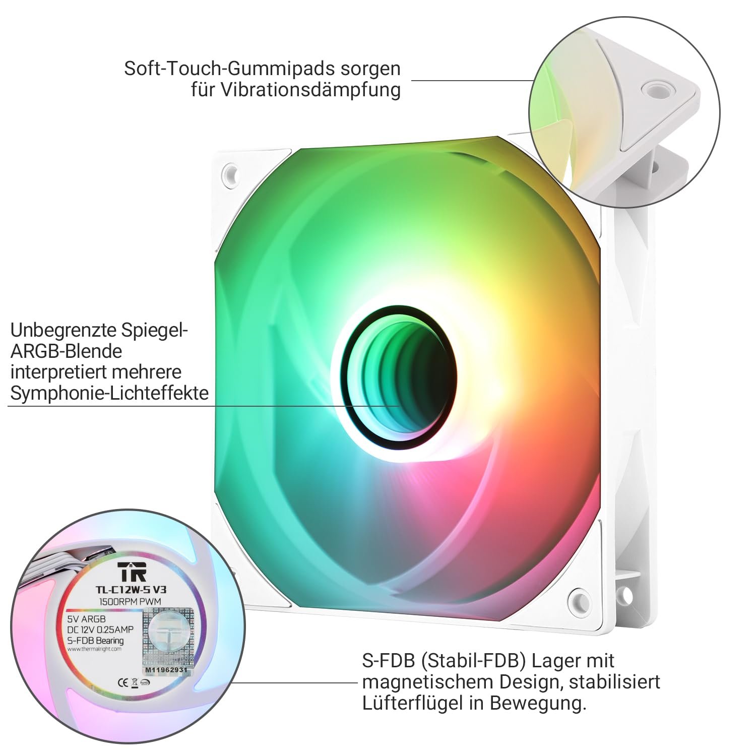 Kit 3x Cooler Fan Efeito Infinito Thermalright, ARGB, 120mm, PWM, Branco – TL-C12W-S V3 X3