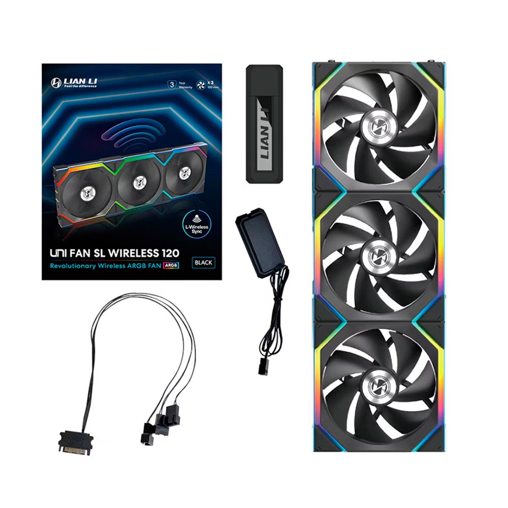 KIT FAN COM 3 UNIDADES LIAN LI UNI FAN SL WIRELESS, ARGB, 120MM, BLACK