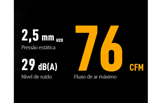 - Fluxo de ar líder na categoria e baixos níveis de ruído.
