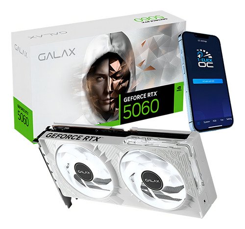 Placa de Video GALAX GeForce 5060 1-Click OC White 8GB GDDR7 128-bit, DLSS4 – 56NSN8MDCZWH .