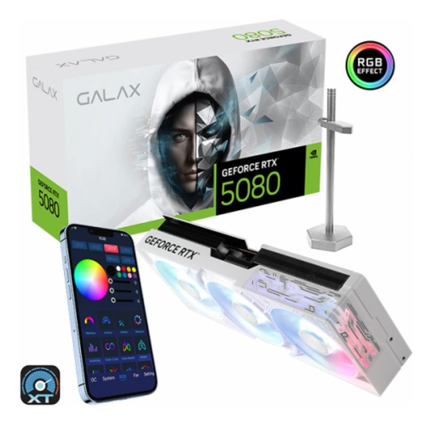 Placa de Video RTX 5080 16GB Galax Branca Nvidia GeForce 1-Click OC ARGB, GDDR7, Tri Fan, DLSS 4, Ray Tracing