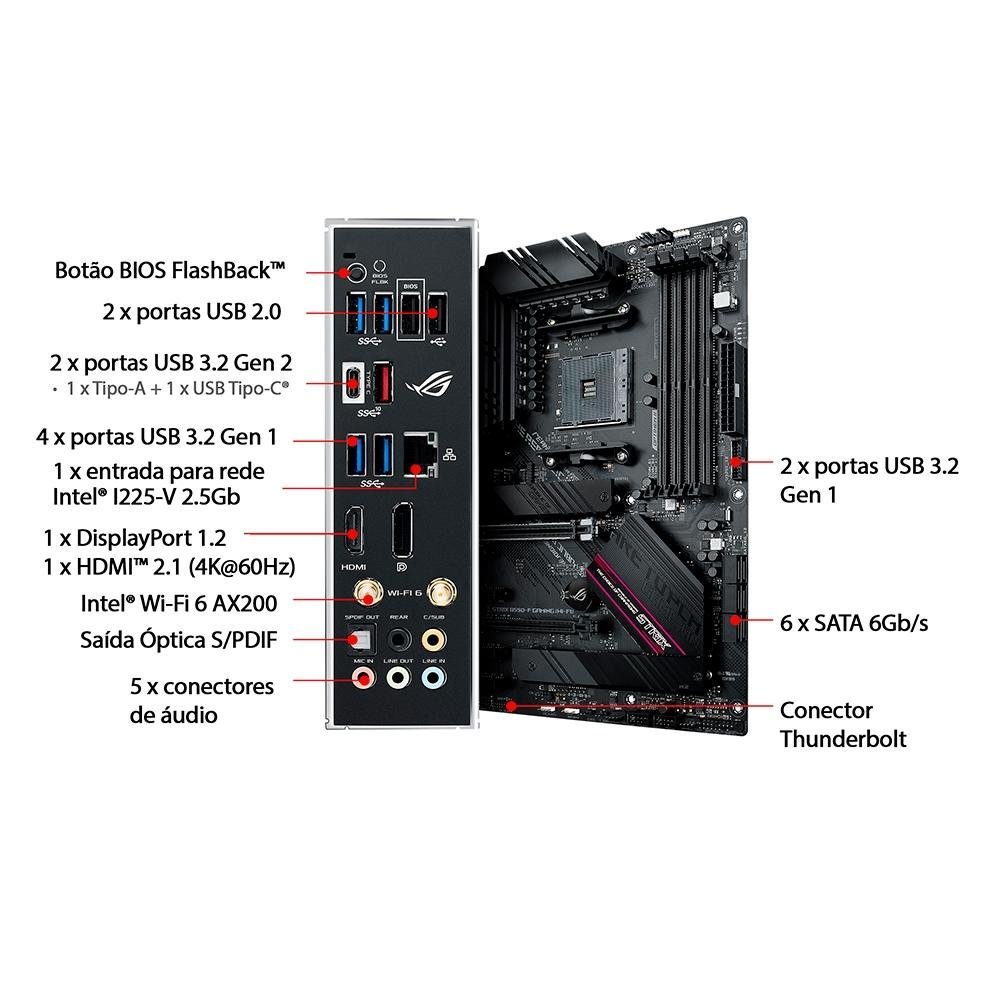 Placa-Mae Asus ROG Strix B550-F Gaming Wi-Fi II, AMD AM4, ATX, DDR4, PCI 4.0, 2x slots M.2 – 90MB19V0-M0EAY0