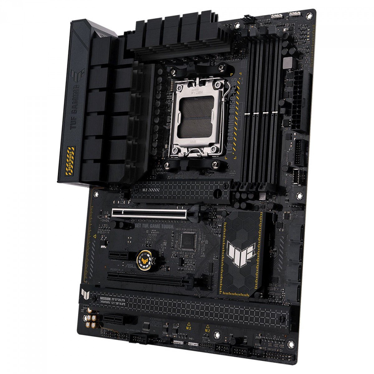 O ASUS TUF GAMING B650-PLUS pega todos os elementos essenciais dos mais recentes processadores AMD Ryzen série 7000 e os combina com recursos prontos para jogos e durabilidade comprovada. Projetada com componentes de nível militar, uma solução de energia atualizada e um sistema de refrigeração abrangente, esta placa-mãe vai além das expectativas com desempenho sólido e estável para jogos de maratona. As placas-mãe TUF GAMING também passam por rigorosos testes de resistência para garantir que possam lidar com condições em que outras podem falhar. Esteticamente, este modelo incorpora elementos de design geométrico e off-black robustos para refletir a confiabilidade e estabilidade que definem a série TUF GAMING.