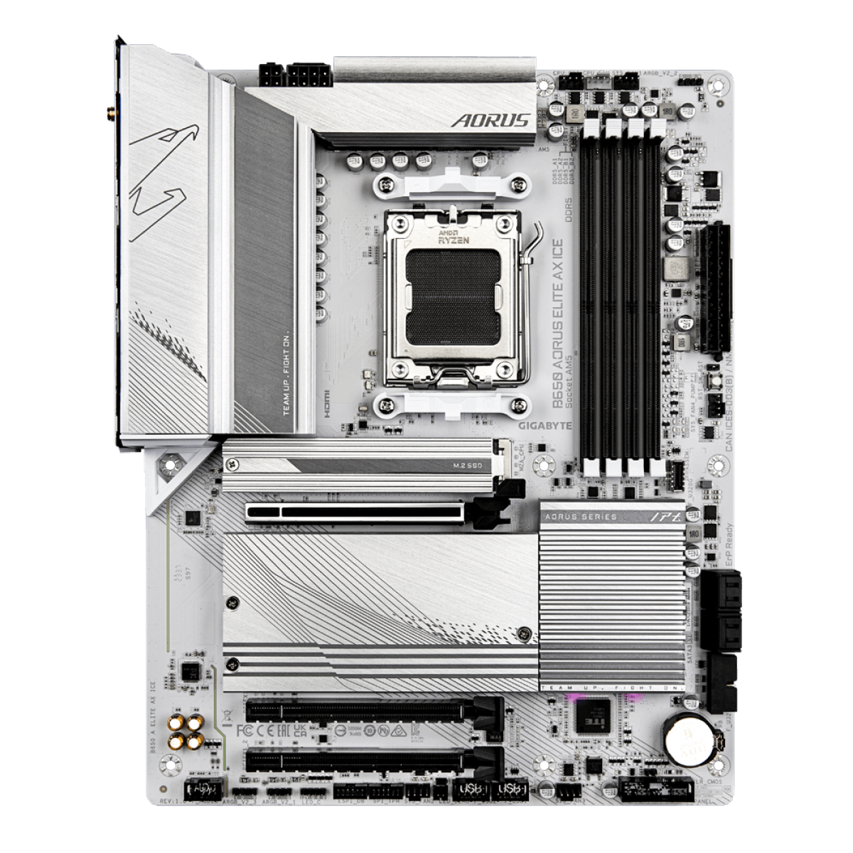 Placa Mãe Branca B650 AORUS ELITE AX ICE, WIFI e Bluetooth, AMD AM5, ATX, DDR5