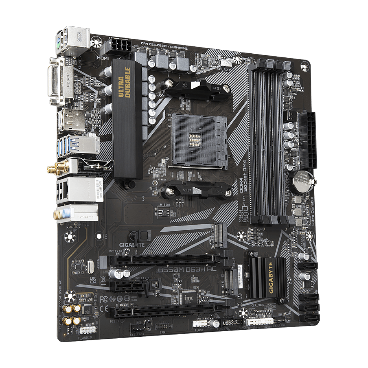Placa Mãe Gigabyte B550M DS3H AC, AMD AM4, DDR4, mATX, USB 3.0, WI-FI, Bluetooth, DVI, HDMI