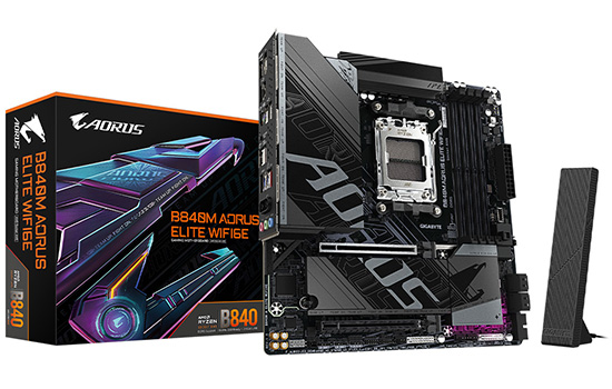 PLACA MÃE GIGABYTE B840M AORUS ELITE WIFI6E, CHIPSET B840, AMD AM5, MATX, DDR5