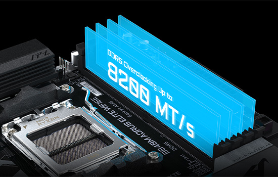 As placas-mãe Elite Gaming aumentam o desempenho da memória DDR5 e oferecem compatibilidade de alto nível usando vários métodos avançados.