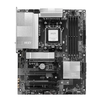 O PRO B850-P WIFI oferece um design simples com um esquema de cores prateado harmonioso que combina perfeitamente com construções de PC brancas e pretas. Ele é projetado com muitos recursos exclusivos da MSI, um verdadeiro Wi-Fi 7 com EZ Antenna, 5G LAN, PCIe 5.0 M.2 com EZ M.2 Shield Frozr II e Supplemental PCIe Power, pronto para os processadores AMD Ryzen™ série 9000.