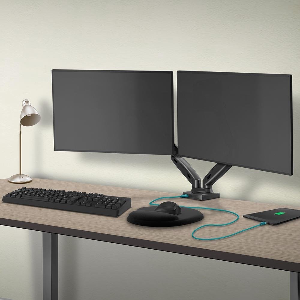 Suporte ELG Articulado de Mesa para 2 Monitores, Pistão a Gás, Até 35, USB Integrado – F180USB