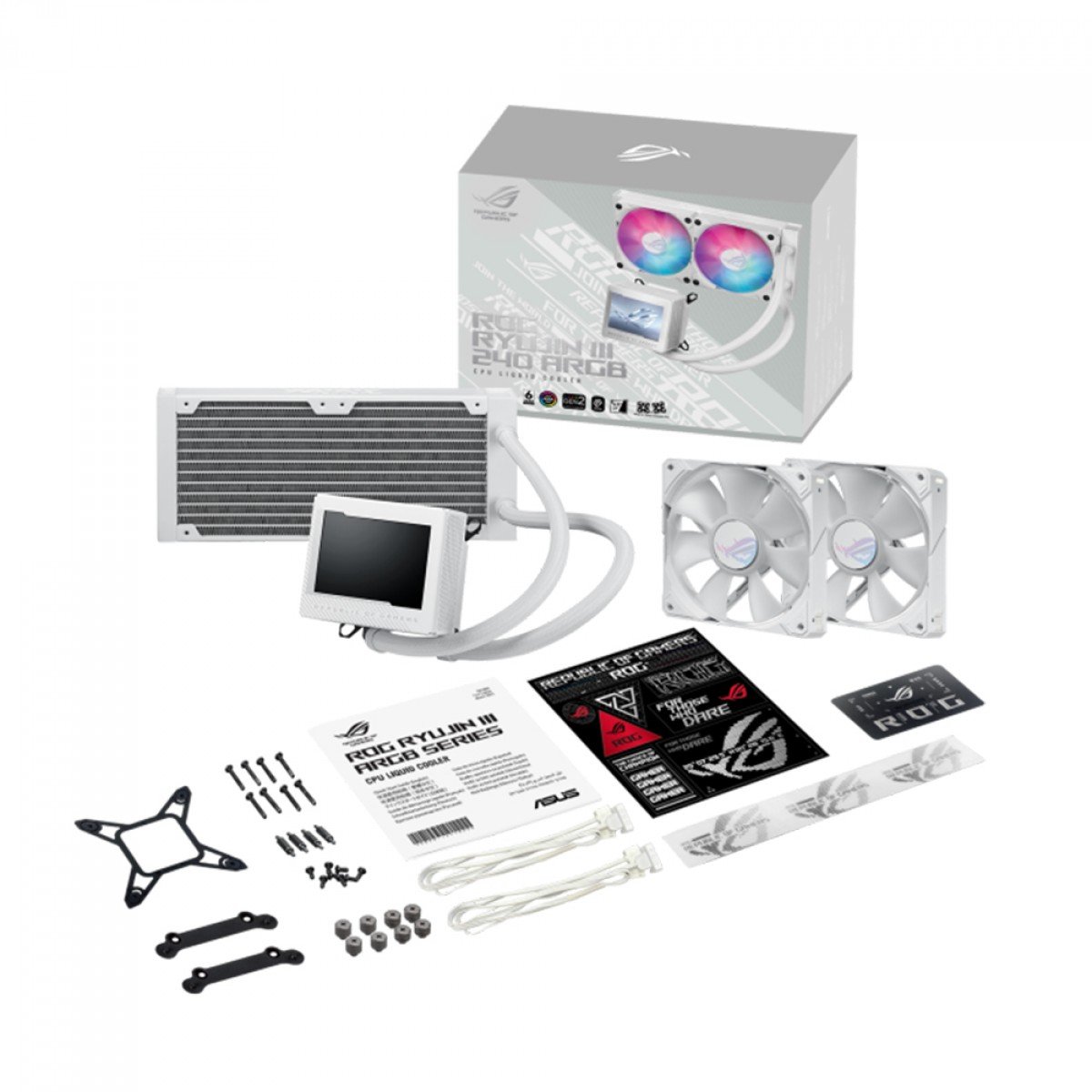 Water Cooler Asus Rog Branco Ryujin III, 240mm, ARGB, Display LCD 3.5 , Intel-AMD