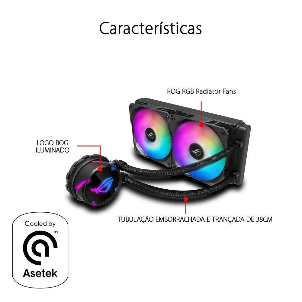 Cooler de CPU líquido all-in-one ROG Strix LC 240 com Aura Sync e ventoinhas duplas de radiador RGB endereçáveis ROG de 120mm