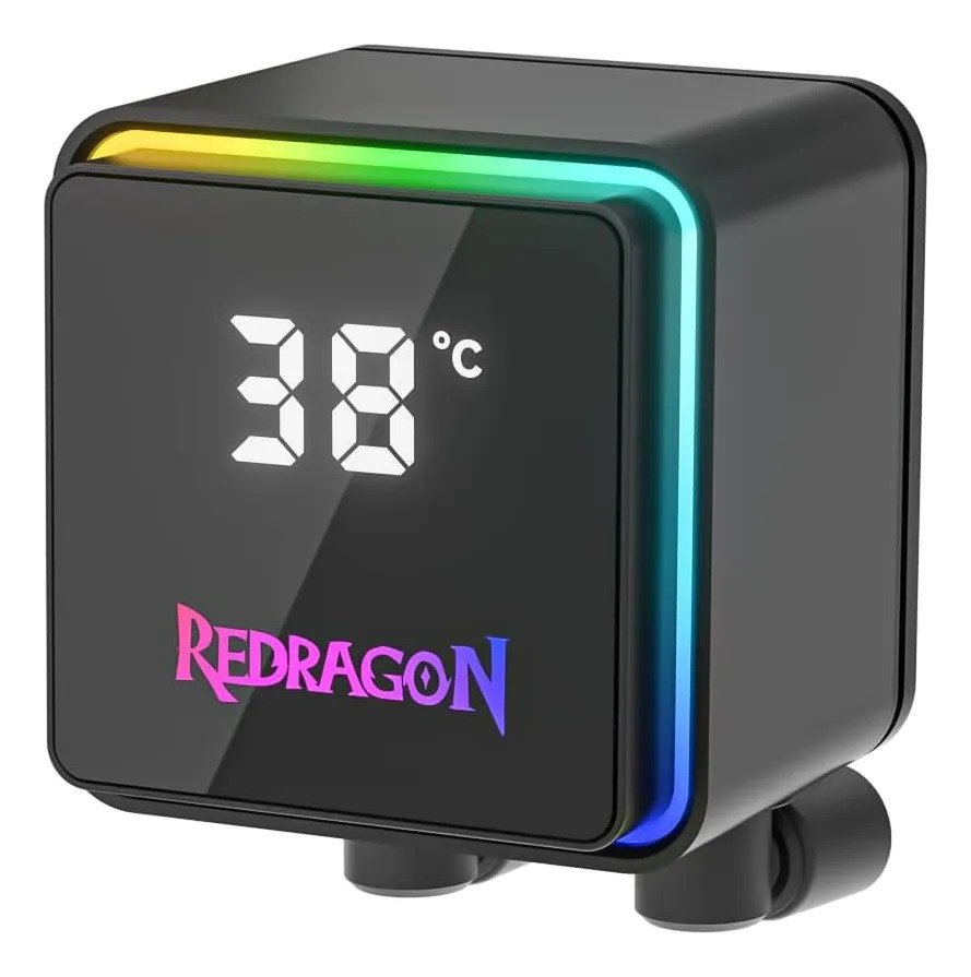 - Water Cooler Redragon com display de monitoramento com encaixe magnético para ajustes rápidos de orientação